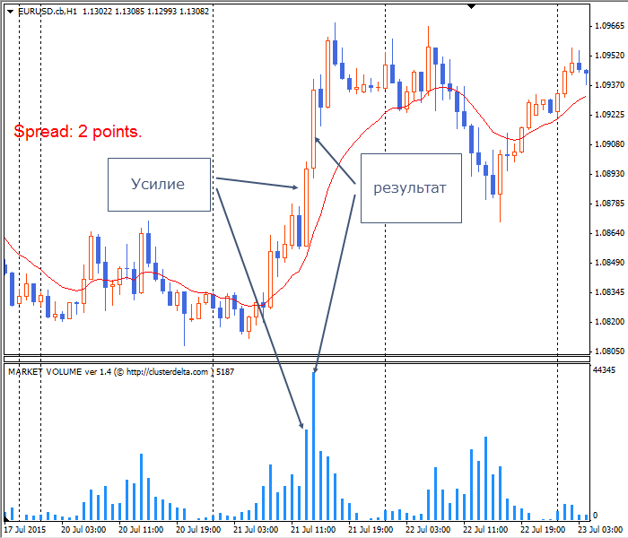 Стоит отметить, что подобный торговый сигнал обычно используют вместе с первым описанным ранее. То есть первый сигнал может послужить лишь предупреждением о возможном развороте, а уже по второму – пересечению нулевой отметки, мы входим. Либо же осуществлять вход сразу по обоим, но только в этом случае нужно аккуратно работать с объёмами, особенно это касается волатильных пар. Нередко нулевой уровень оказывает серьёзное воздействие и цена разворачивается в области этих значений. С другой стороны, если на рынке есть ярко выраженный тренд, то торговля всегда должна осуществляться только в главном направлении рынка, поэтому качество обоих сигналов становится значительно выше, если мы говорим о трендовой торговле.
